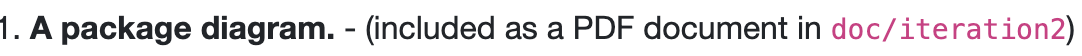 Perfect, I've started chipping away at the UI class diagrams (see ui-design channel). I think if we do that, get all the diagrams collated, and make sure mine and Eric's combined branch gets pushed to main, we should be pretty much ready to turn in.